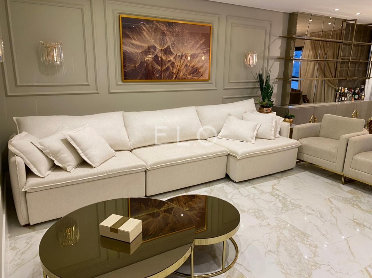 Amplo living integrado à cozinha